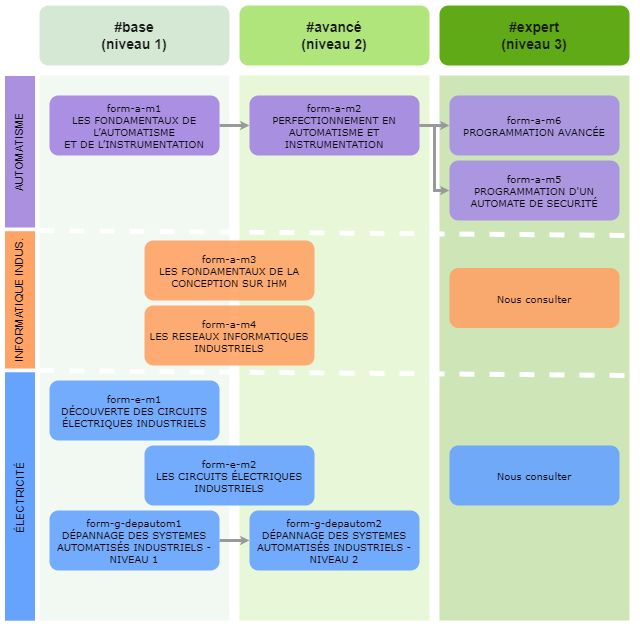 Nos formations techniques sont proposées suivant 3 niveaux de connaissances visées.